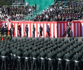 陸では観閲行進、空には観閲飛行と場内は興奮に包まれた。確かに胸が躍るのは、見事な演出の効果かも。行進曲も陸海空と別々だ。また、戦車隊をはじめ、ミサイル部隊の空自ペトリオッット部隊は圧巻だ。航空部隊も編成飛行で、最高潮。世界は緊張状態に成りつつある現在、油断大敵である。